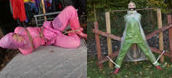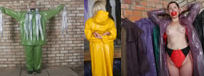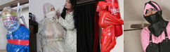 bondage girls in rainwear and fetish wear of rubber, pvc and